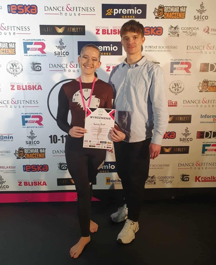 W dniach 10 – 11 styczna w małopolskiej Łapczycy odbyła się czwarta edycja zawodów gimnastyki powietrznej „Love to fly”. Wśród ponad 250 uczestników znalazła się nasza uczennica klasy maturalnej 4dL Paulina Panek. Paulina w kategorii „profesjonalista koło 15-17 lat” zajęła IV miejsce oraz zdobyła wyróżnienie! Nasza uczennica jest zawodniczką bielskiego GOjumpu, gdzie trenuje pod okiem Igora Gajewskiego.