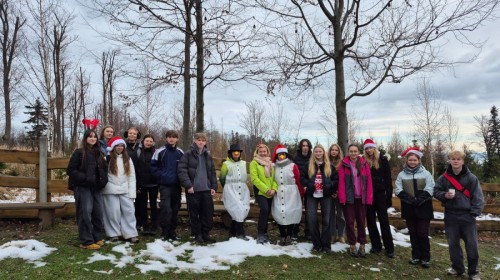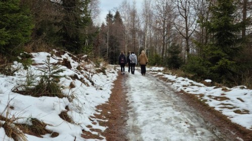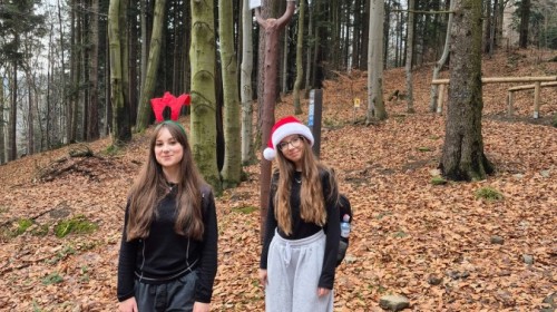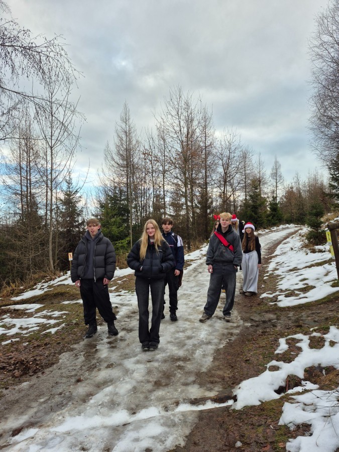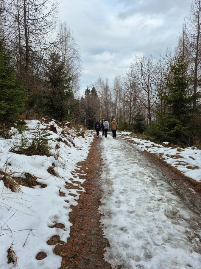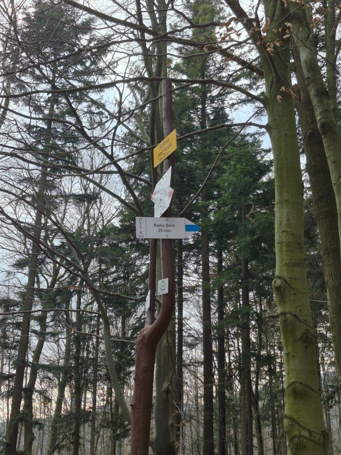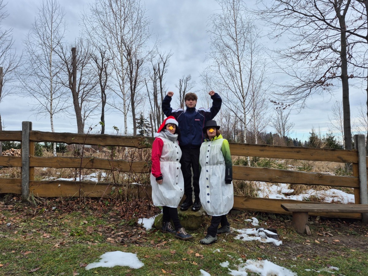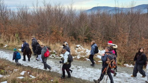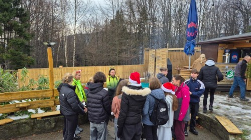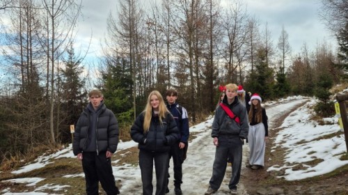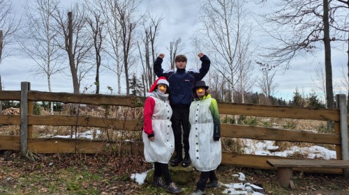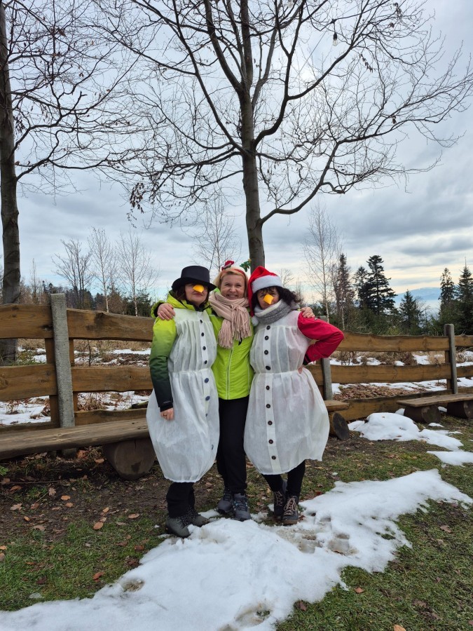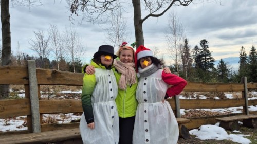 6. grudnia to doskonała okazja, aby kontynuować nasze wyzwanie "40 szczytów na 40-lecie szkoły". Dlatego też, w odpowiednich strojach i nakryciach głowy, z samego rana, gromadnie wyruszyliśmy czerwonym szlakiem na Kozią Górę. Udało się-kolejny szczyt zdobyty! I to w jakim stylu! Na utrudzonych wędrowców na górze czekało już ognisko-doskonała okazja, aby udoskonalić umiejętności pieczenia kiełbasek. Jeszcze tylko pamiątkowe zdjęcie z nieodzowną flagą VI LO i wyruszyliśmy w powrotną drogę. Zaraz, zaraz-a skąd się tu wzięły dwa bałwanki?
