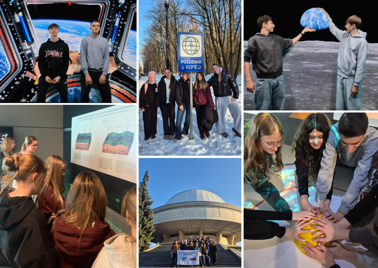 20 stycznia 2026 roku uczniowie klas 1aL i 1dL wzięli udział w wycieczce edukacyjnej do Planetarium Śląskiego w Chorzowie. Była to wyjątkowa i niezwykle ciekawa lekcja geografii, podczas której teoria spotkała się z praktyką. Uczniowie mogli na własnej skórze przekonać się, jak duży wpływ na odczuwanie temperatury ma wilgotność powietrza, a następnie wykazali się dużym hartem ducha, uczestnicząc w trzech realistycznych symulacjach trzęsienia ziemi. Niezapomnianych wrażeń dostarczyła także prelekcja pt. „Na biegun i z powrotem”, poświęcona wpływowi ruchu obiegowego Ziemi na pory roku oraz zjawiska zachodzące na naszej planecie. Wyjazd był nie tylko cennym doświadczeniem edukacyjnym, ale również świetną okazją do wspólnej nauki i integracji.