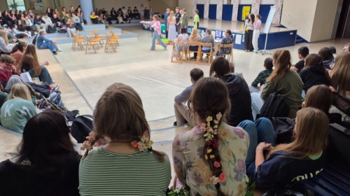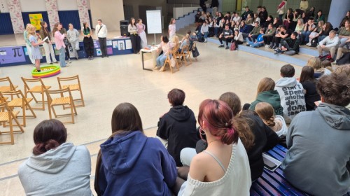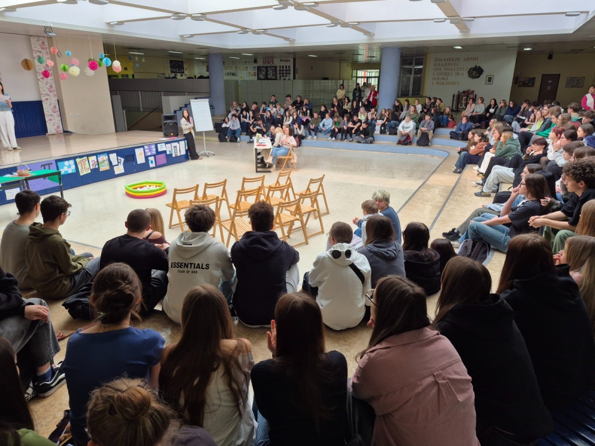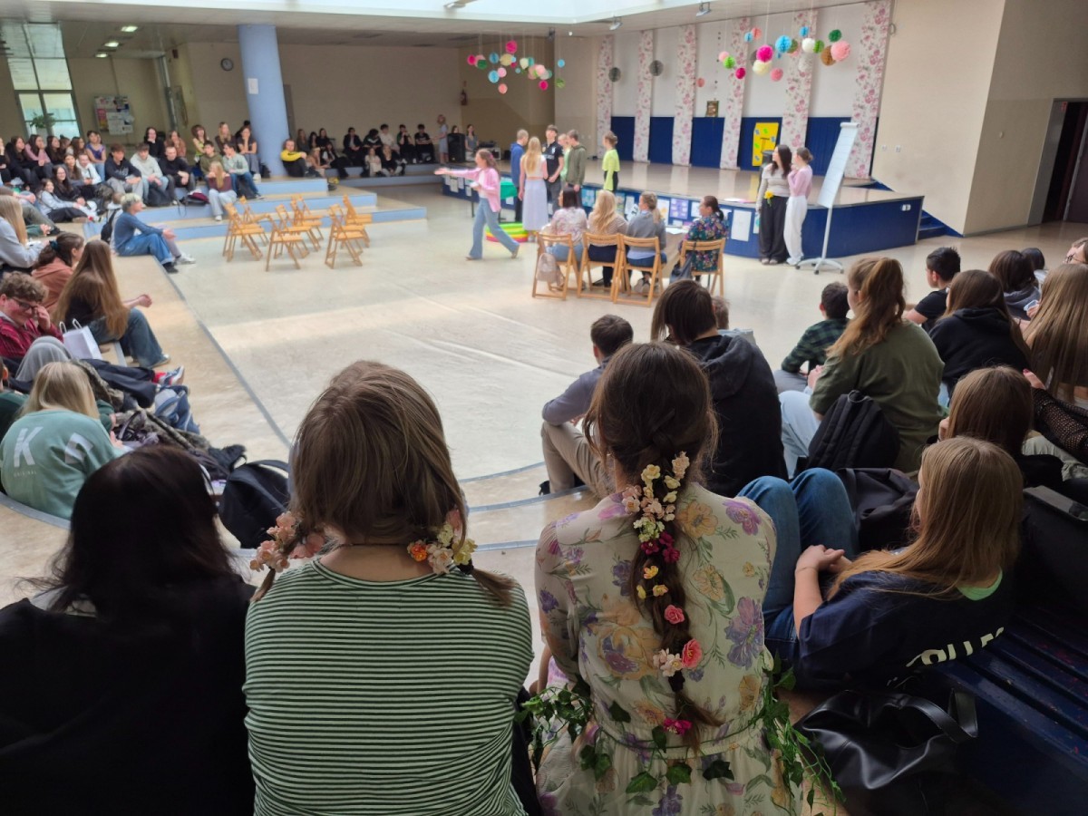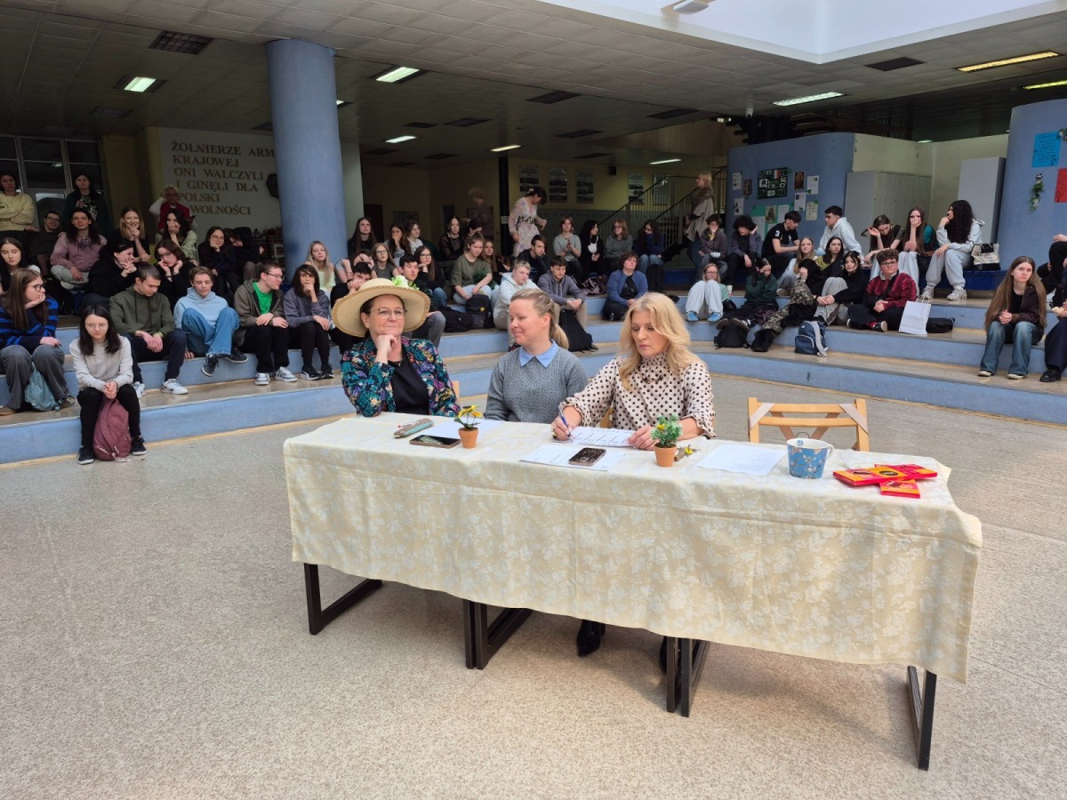 20 marca 2026 r. uczniowie klas 4cL i 4eL zorganizowali dla młodszych koleżanek i kolegów szkolne obchody pierwszego dnia wiosny. Na uczestników czekało wiele atrakcji – wspólne zabawy, quizy, śpiewy oraz mnóstwo śmiechu i dobrej energii. Wydarzenie przebiegło w radosnej atmosferze i było doskonałą okazją do integracji całej społeczności szkolnej.
