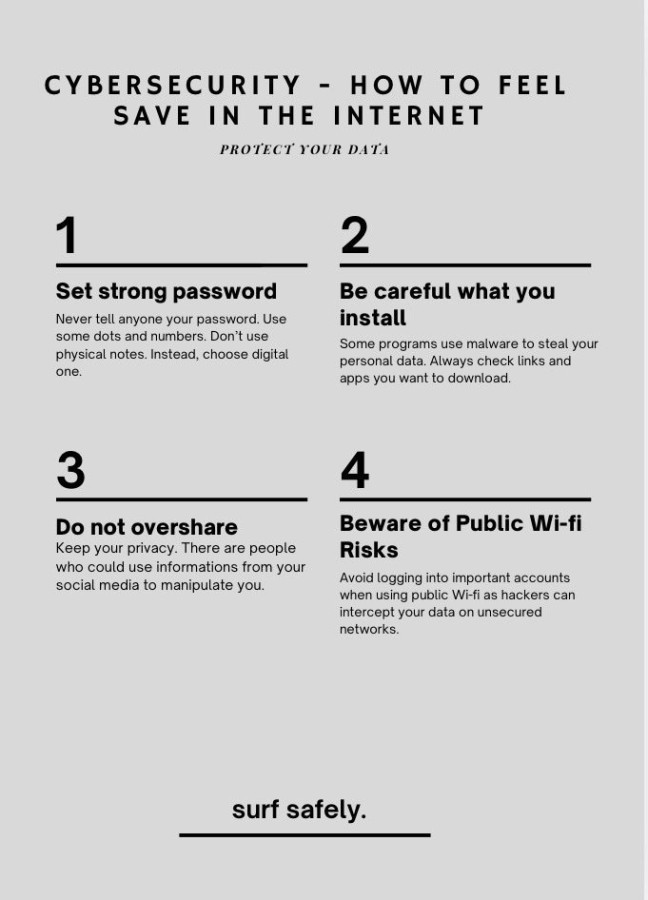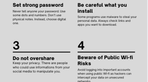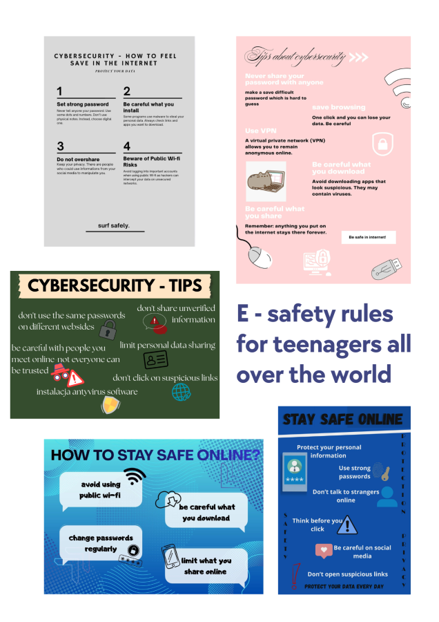 Pierwszym krokiem we wspólnej współpracy było przedstawienie się na platformie TwinSpace, zaprojektowanie logo projektu, a także stworzenie wystawy z plakatów dotyczących bezpieczeństwa w Internecie.