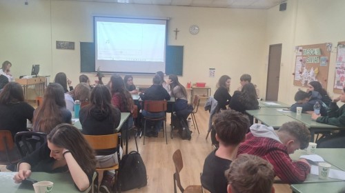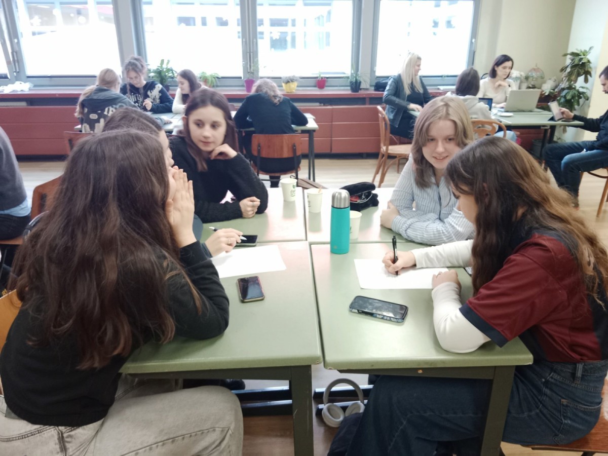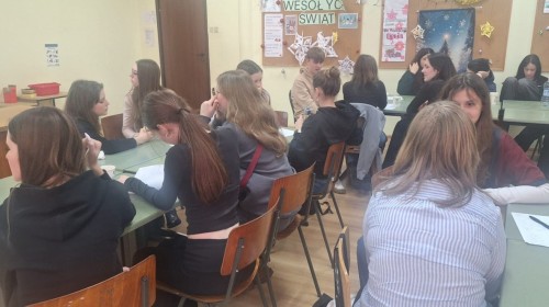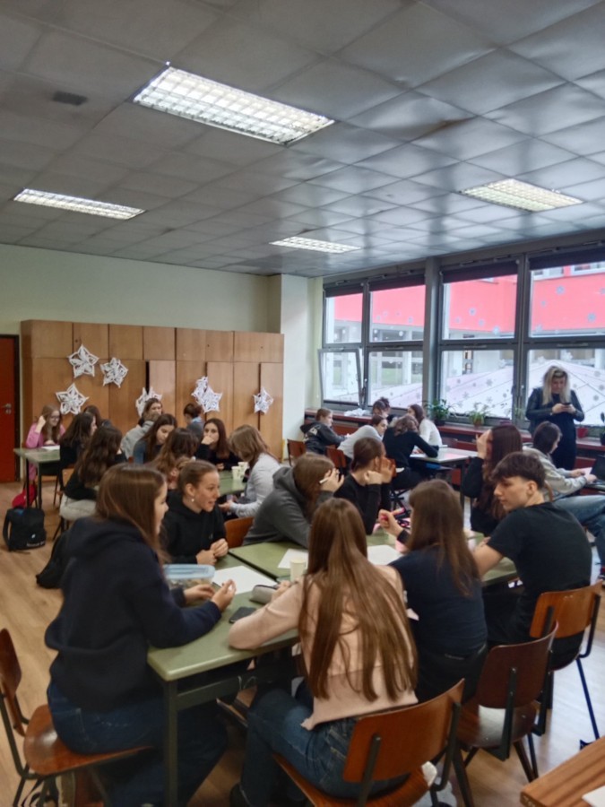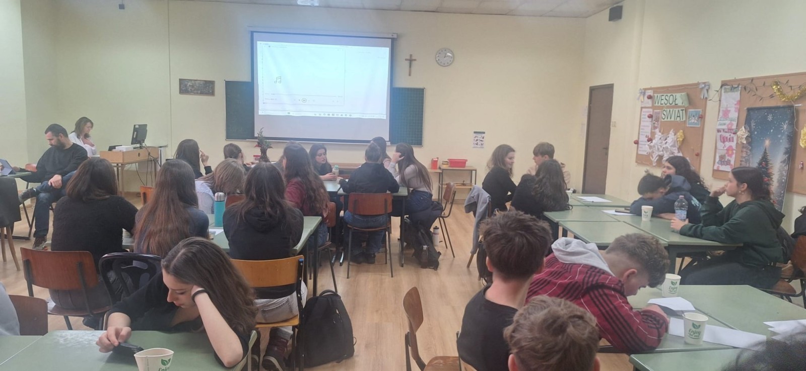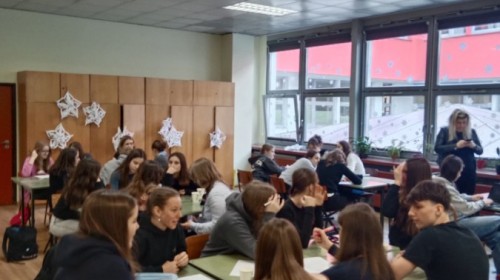 W dniu dzisiejszym klasa 1a LO wraz z opiekunami: Alicją Jabłońską i Reginą Dudek wzięła udział w 3 etapie projektu " Odkrywanie Wspólnych Korzeni – Mapa i Podcasty Polsko-Czeskiego Pogranicza Oczami Młodych ". Tym razem przyjechali do naszej szkoły goście, czyli młodzież i nauczyciele ze Szkoły im. Jozefa Bożka w Czeskim Cieszynie. Wspólnie uczestniczyli w warsztatach służących wzajemnemu poznaniu ciekawych miejsc, które można zwiedzić w Bielsku-Białej oraz Czeskim Cieszynie. Zdobywali też informacje o kulturze regionu oraz daniach charakterystycznych dla obu państw. Brali udział w dyskusjach i ćwiczeniach prowadzonych przez koordynatorów z UBB oraz wspólnie zwiedzali naszą szkołę.