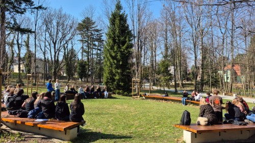 23 marca 2026 r. uczniowie klasy 1dL wzięli udział w warsztatach przyrodniczych w Cygańskim Lesie, prowadzonych przez edukatorów z CEE Ekosynteza. Zajęcia terenowe były doskonałą okazją do bezpośredniego kontaktu z naturą oraz zdobywania wiedzy poprzez obserwację i doświadczenie. W warsztatach uczestniczyli także uczniowie z Waldorfskiego Liceum Ogólnokształcącego im. C. K. Norwida oraz przedstawiciel RODN WOM w Bielsku-Białej – dr Barbara Michałek-Piernik. Podczas zajęć uczniowie uczyli się rozpoznawać rośliny i zwierzęta pojawiające się wiosną w lesie, rozwijając umiejętności identyfikacji gatunków w ich naturalnym środowisku. Ważnym elementem warsztatów było również wykorzystanie nowoczesnych narzędzi – uczestnicy poznali aplikację iNaturalist, służącą do dokumentowania obserwacji przyrodniczych. Uczniowie aktywnie rejestrowali swoje obserwacje, tworząc materiał badawczy, który może stanowić cenne źródło danych dla naukowców zajmujących się ochroną przyrody. Zajęcia przyczyniły się również do rozwijania świadomości ekologicznej młodzieży oraz zrozumienia znaczenia ochrony lokalnej fauny i flory. Warsztaty były doskonałym przykładem integracji wiedzy teoretycznej z praktyką – połączeniem spaceru przyrodniczego z wykorzystaniem technologii i metod nauki obywatelskiej.