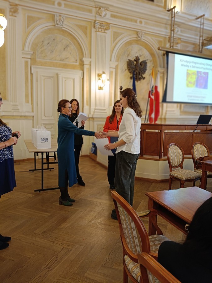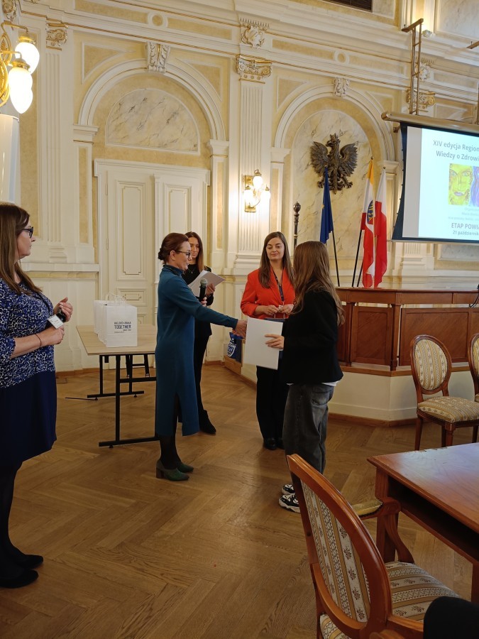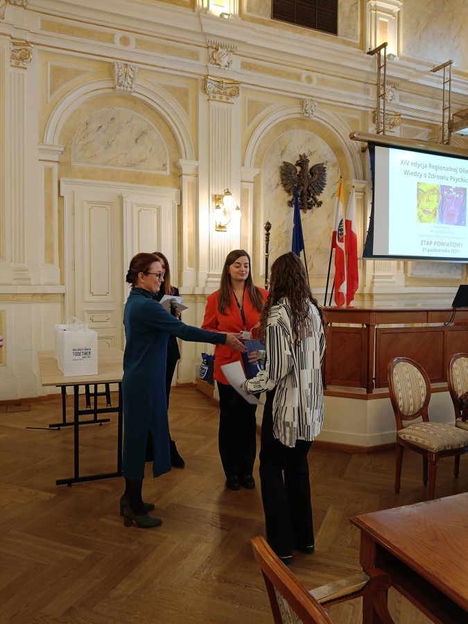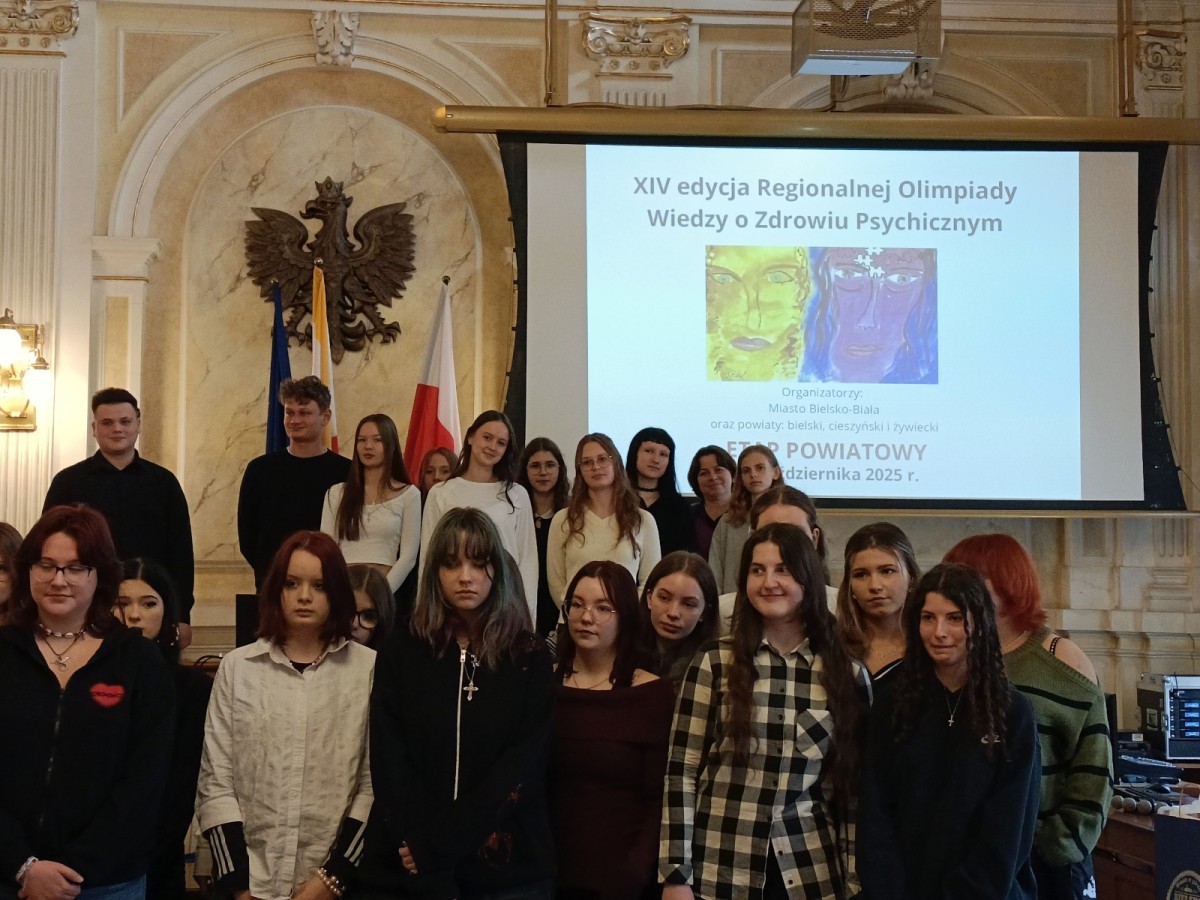 W dniu 21.10.2025 w sali ratuszowej Urzędu Miasta odbył się kolejny etap Regionalnej Olimpiady Wiedzy o Zdrowiu Psychicznym. Naszą szkołę reprezentowały trzy uczennice z klas 1dL, 3cL i 3eL. Rywalizacja między uczestnikami była duża. Uczennice poradziły sobie dobrze w teście podstawowym. Organizacja zmagań w tak pięknym i ważnym dla naszego miasta miejscu dodała splendoru i ważności temu wydarzeniu.