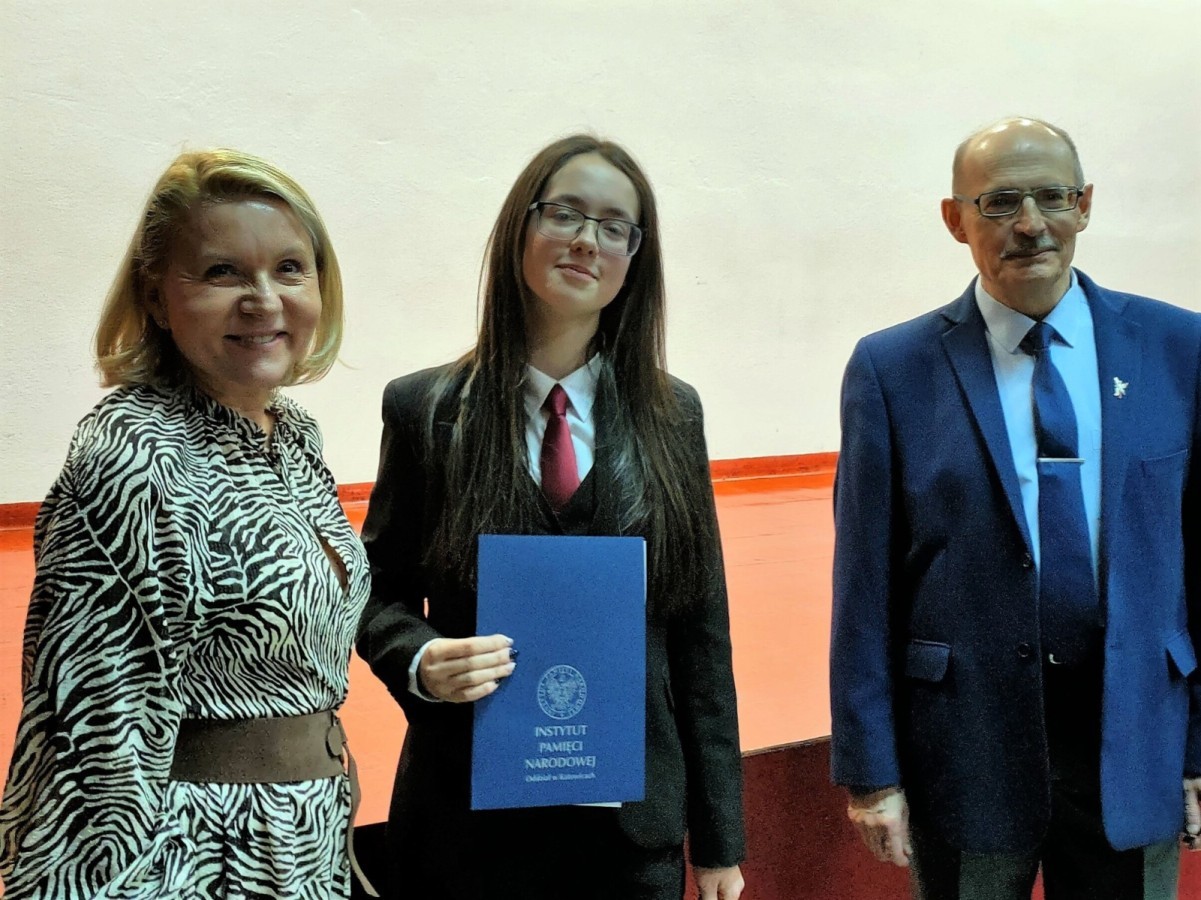 Dyrektor Dorota Siwik, Sandra Telok i nauczyciel historii mgr Rafał Kutryba