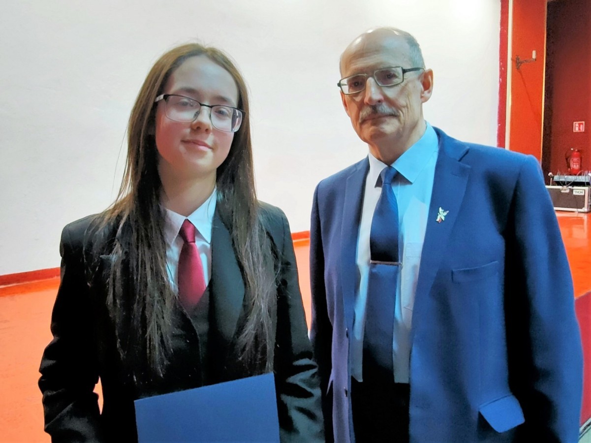 Organizator konkursu wręcza Sandrze Telok dyplom i nagrodę