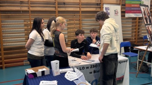 W dniu 17 marca uczniowie klas naszego liceum, wraz z opiekunkami Darią Borowską i Magdaleną Sitkiewicz, wzięli udział w targach edukacyjnych zorganizowanych w Szkole Podstawowej nr 37 w Bielsku-Białej. Stanowisko naszej szkoły cieszyło się dużym zainteresowaniem wśród odwiedzających. Uczniowie, wspólnie z nauczycielami, przybliżyli specyfikę funkcjonowania liceum oraz zaprezentowali ofertę edukacyjną przyszłych klas. Była to doskonała okazja do bezpośrednich rozmów, wymiany doświadczeń oraz zachęcenia młodszych uczniów do wyboru naszej szkoły. Dziękujemy wszystkim zaangażowanym za aktywny udział i godne reprezentowanie naszej placówki.