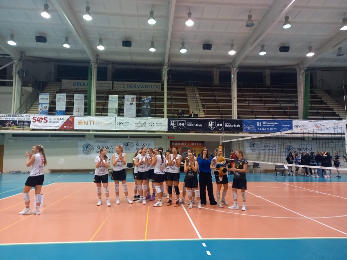 Nasze zawodniczki z BKS Stal Bielsko-Biała odniosły pewne zwycięstwo nad zespołem MKS Dąbrowa Górnicza, wygrywając 3:0 (25:22, 25:15, 25:15). Dzięki temu triumfowi bielszczanki wskoczyły na pierwsze miejsce w tabeli Finałów Mistrzostw Śląska Juniorek. Spotkanie przebiegało pod pełną kontrolą naszej drużyny, która od początku narzuciła swój rytm gry i konsekwentnie punktowała rywalki. Na szczególne wyróżnienie zasłużyła Alicja Pszczółka, wybrana MVP meczu. Gratulacje dla całego zespołu – walczymy dalej!