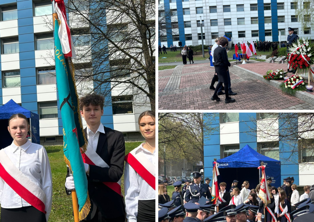 Dziś, 17 kwietnia 2026 roku, na terenie Komendy Wojewódzkiej Policji w Katowicach, przed Grobem Policjanta Polskiego odbył się uroczysty apel z okazji 86. rocznicy zbrodni katyńskiej. W wydarzeniu uczestniczyli uczniowie klasy 1bL wraz z wychowawcą, którzy oddali hołd ofiarom tej tragicznej zbrodni. Podczas uroczystości młodzież miała okazję wziąć udział w części oficjalnej oraz w chwili zadumy i refleksji nad historią. Udział w obchodach był dla uczniów ważną lekcją patriotyzmu i pamięci o bohaterach, którzy oddali życie za Ojczyznę.