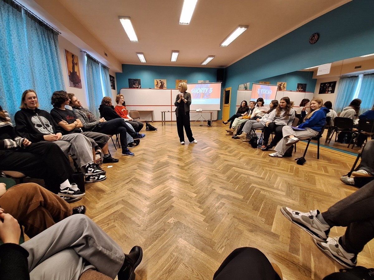 W dniach od 17 do 18 listopada 2025r odbyły się warsztaty dziennikarskie rozpoczynające III edycję Shortów obywatelskich organizowanych przez UBB oraz Punkt 11. W pierwszym dniu zajęć nasi uczniowie mogli bliżej poznać tajniki dziennikarstwa oraz sposoby autentyczności informacji, które każdego dnia docierają do nas w ogromnej ilości. Kolejne wykłady poświęcone zostały kwestiom technicznym, mającym pomóc młodzieży stworzyć swoje reportaże. Młodzi ludzie poznali zasady tworzenia opowieści, które trafiają do odbiorców, dowiedzieli się także jak prawidłowo sfilmować oraz zmontować własny materiał. Dzięki wiedzy, którą uczniowie zdobyli w tych dniach, mogą przystąpić do tworzenia własnych filmów, poruszających ważne dla nich problemy. Efekty ich pracy zostaną zaprezentowane podczas festiwalu młodych dziennikarzy w lutym 2026r.