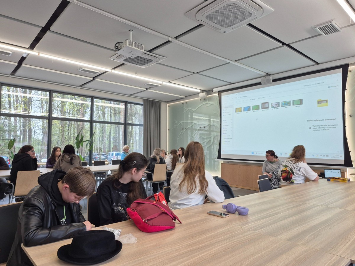 15 kwietnia 2026 roku uczniowie klasy 3bL wzięli udział w warsztatach edukacyjnych pt. „Zmiany klimatu i ich wpływ na utratę różnorodności biologicznej”, które odbyły się w Centrum Edukacji Ekologicznej Ekosynteza. Celem zajęć było wprowadzenie uczestników w tematykę zmian klimatu oraz uświadomienie ich wpływu na środowisko przyrodnicze, życie społeczne i gospodarcze. Podczas części teoretycznej uczniowie poznali odpowiedzi na pytania dotyczące działań na rzecz ochrony klimatu, konsekwencji ocieplenia dla świata roślin i zwierząt, zmian klimatycznych w Polsce oraz sposobów przygotowania się na nadchodzące wyzwania. W części praktycznej uczniowie przygotowali kampanię medialną na rzecz ochrony klimatu oraz stworzyli krótkie filmy w technice animacji poklatkowej, promujące działania proekologiczne i ochronę bioróżnorodności. Wyjazd był cennym doświadczeniem edukacyjnym, które pozwoliło uczniom poszerzyć wiedzę oraz rozwinąć umiejętności pracy zespołowej i kreatywnego myślenia.