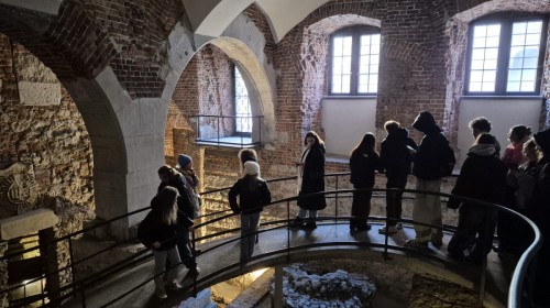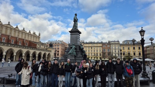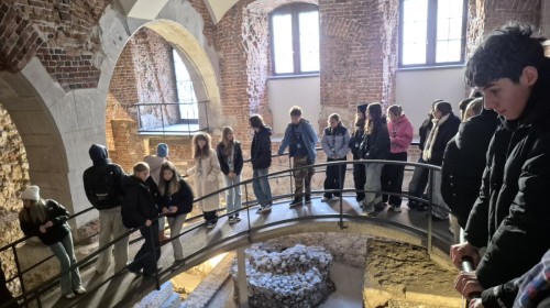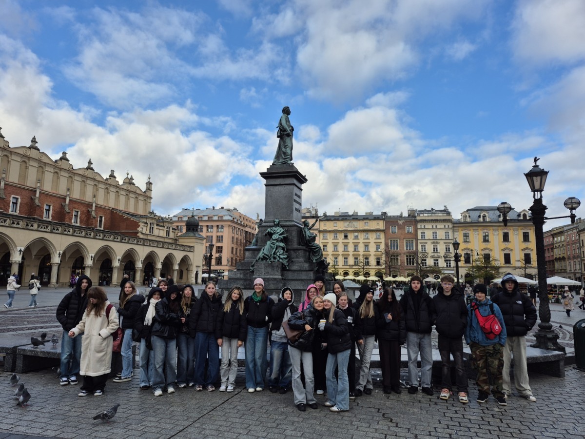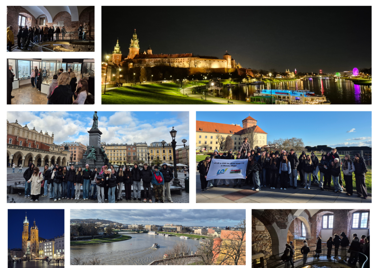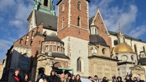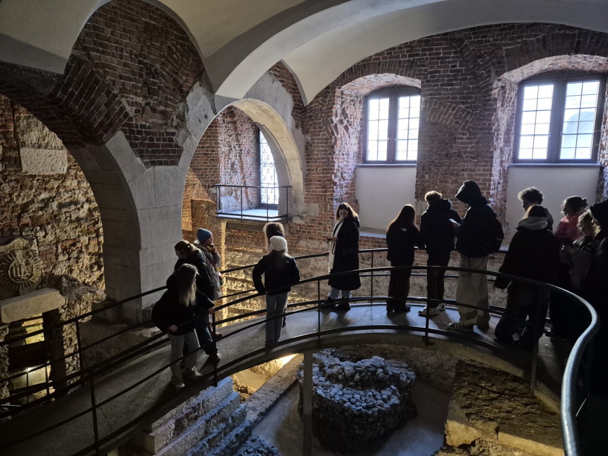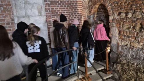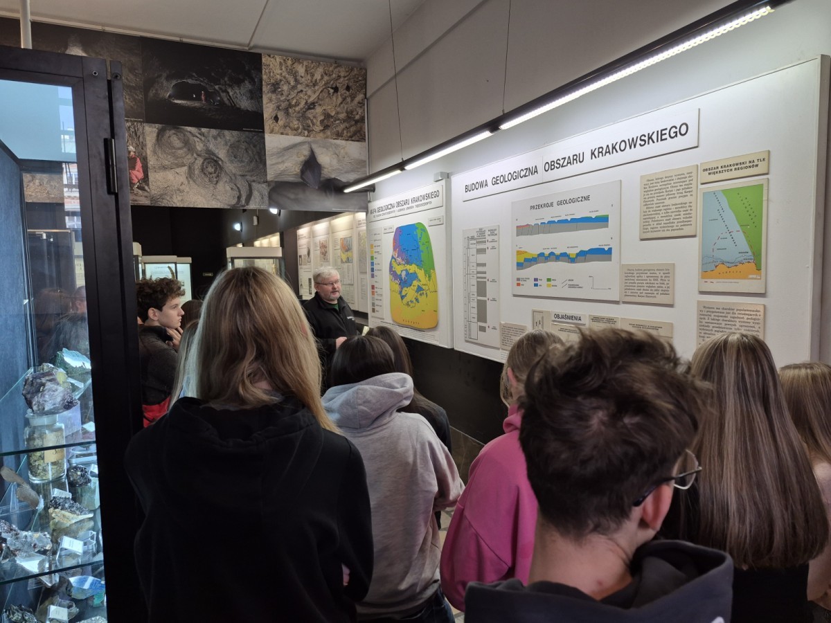 18 listopada 2025 r. uczniowie klas 1aL i 1dL uczestniczyli w wycieczce dydaktycznej do Krakowa, której celem było poszerzenie wiedzy z zakresu geologii, historii oraz kultury. Wyjazd rozpoczął się udziałem w warsztatach w Muzeum Geologicznym Instytutu Nauk Geologicznych PAN, gdzie młodzież mogła zobaczyć wyjątkowe okazy skał i skamieniałości, poznać metody pracy geologów oraz samodzielnie wykonać proste analizy. Po zakończonych zajęciach uczniowie udali się na zwiedzanie Rezerwatu Archeologicznego „Wawel Zaginiony”, poznając najstarsze ślady zabudowy wzgórza wawelskiego i niezwykłą historię tego miejsca. Następnie odwiedzili Reprezentacyjne Komnaty Królewskie, gdzie mogli zobaczyć wnętrza dawnej rezydencji polskich monarchów oraz dowiedzieć się więcej o ich życiu i funkcjonowaniu dworu. Wycieczkę zakończył spacer po krakowskim Starym Mieście, podczas którego uczniowie podziwiali zabytkową architekturę, niepowtarzalny klimat historycznego centrum oraz najważniejsze miejsca na mapie Krakowa. Cały wyjazd okazał się wartościowym połączeniem nauki i doświadczenia, pozostawiając uczestnikom wiele wrażeń i nowych wiadomości.