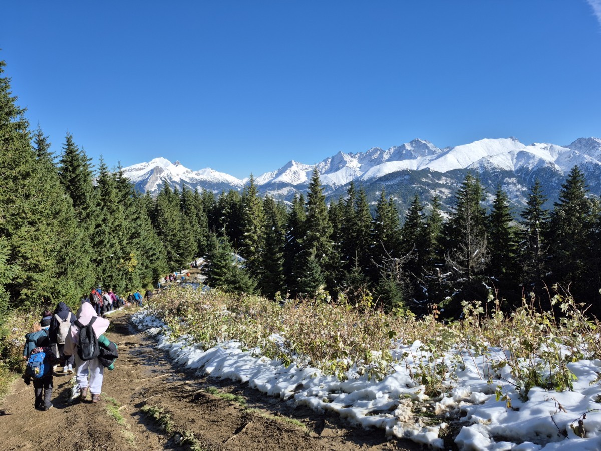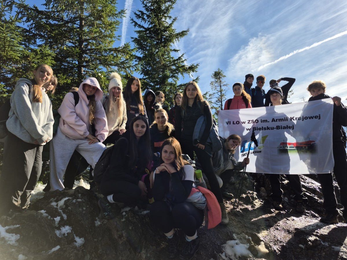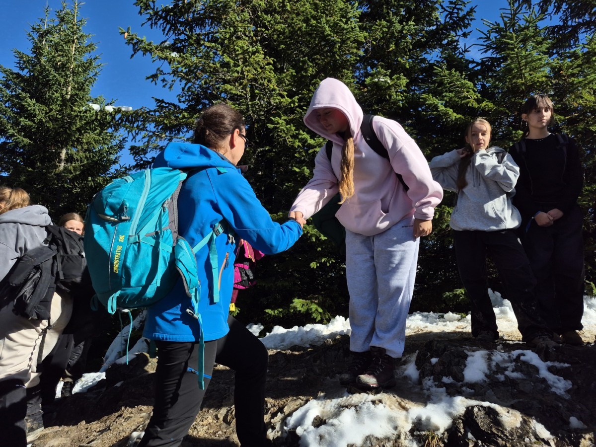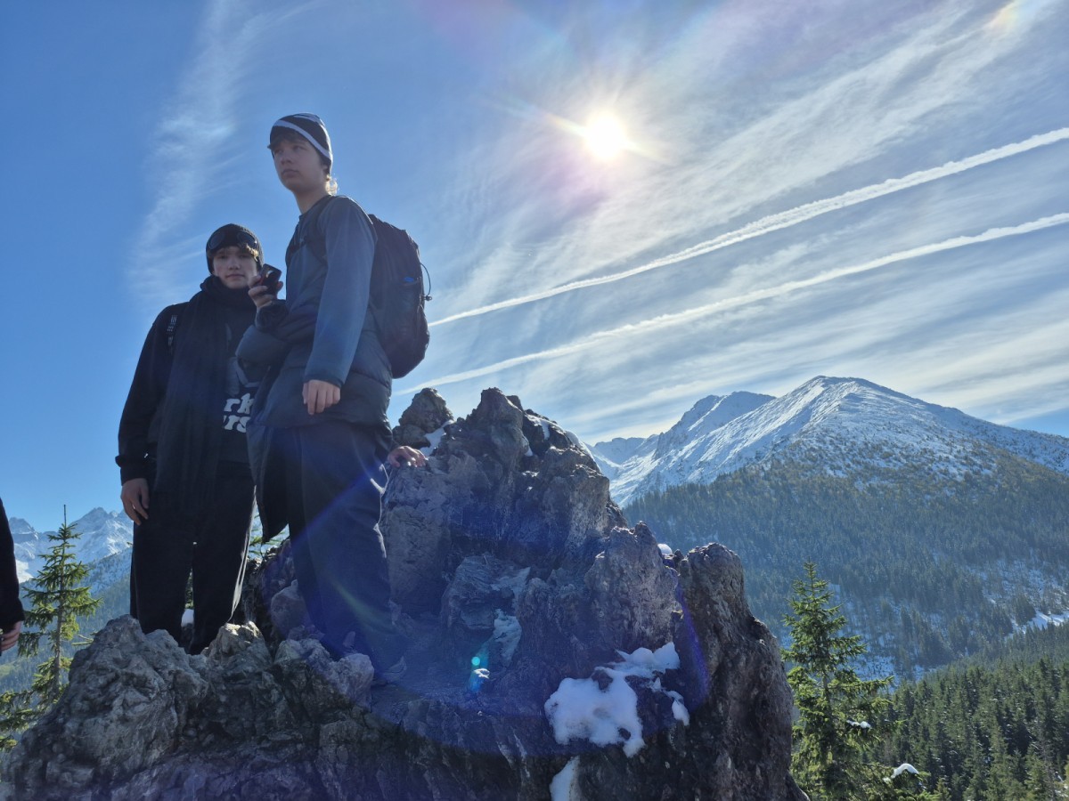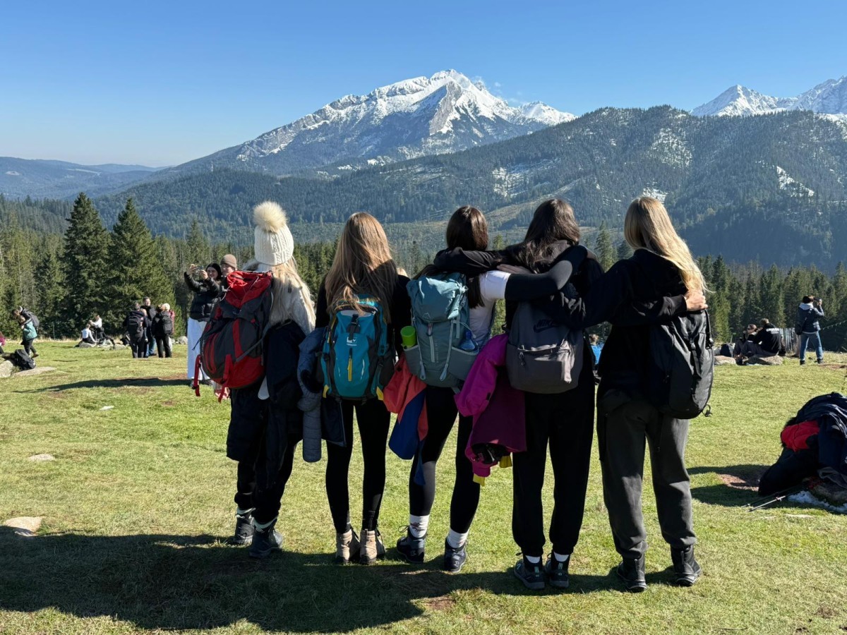 4 października 2025 roku członkowie Szkolnego Koła Polskiego Towarzystwa Tatrzańskiego wyruszyli na swoją pierwszą wspólną wędrówkę po tatrzańskich szlakach. Piękna, słoneczna pogoda towarzyszyła nam przez cały dzień, co tylko spotęgowało radość z obcowania z górską przyrodą. Podczas postoju na Rusinowej Polanie mieliśmy okazję wysłuchać ciekawej opowieści naszej przewodniczki, pani Ani, na temat kulturowego wypasu owiec – tradycji głęboko zakorzenionej w historii Podhala. Kolejnym ważnym punktem wyprawy była Gęsia Szyja, z której roztacza się imponująca panorama Tatr Wysokich. To właśnie tam, na tle majestatycznych szczytów, pani Ania wręczyła uczestnikom legitymacje członkowskie Polskiego Towarzystwa Tatrzańskiego – symboliczne potwierdzenie przynależności do górskiej społeczności. Wyprawa była nie tylko doskonałą okazją do poznania tatrzańskiej przyrody, ale także inspirującym początkiem naszej wspólnej przygody z górami.