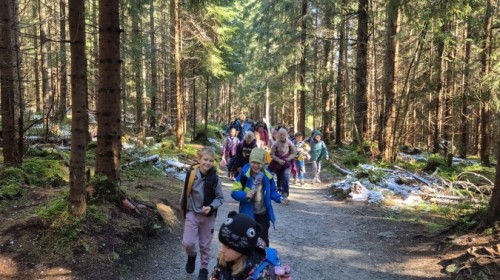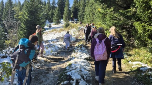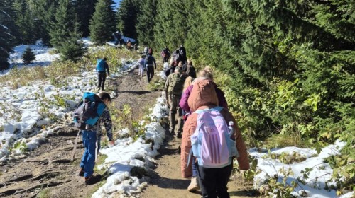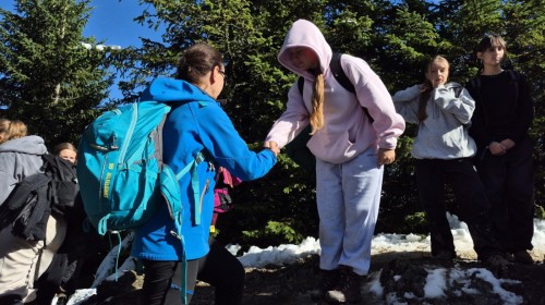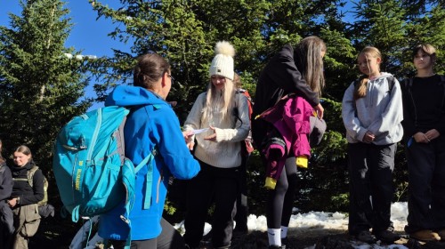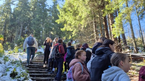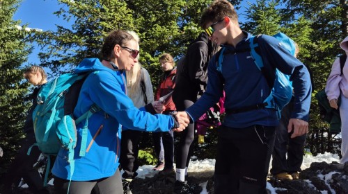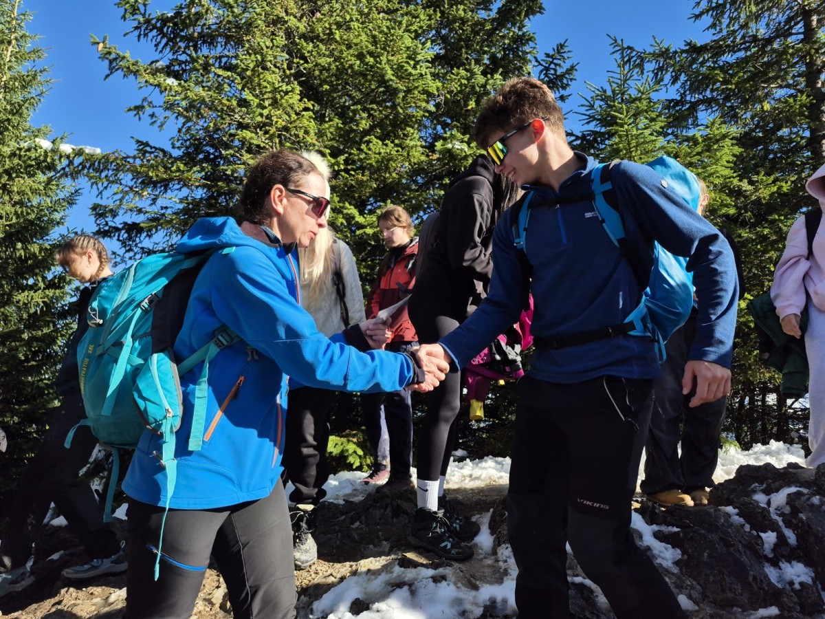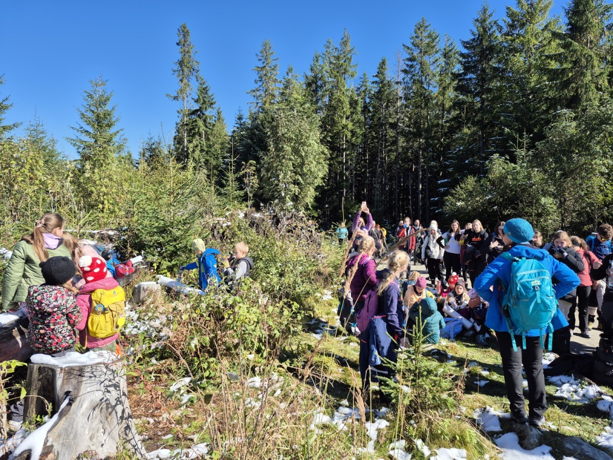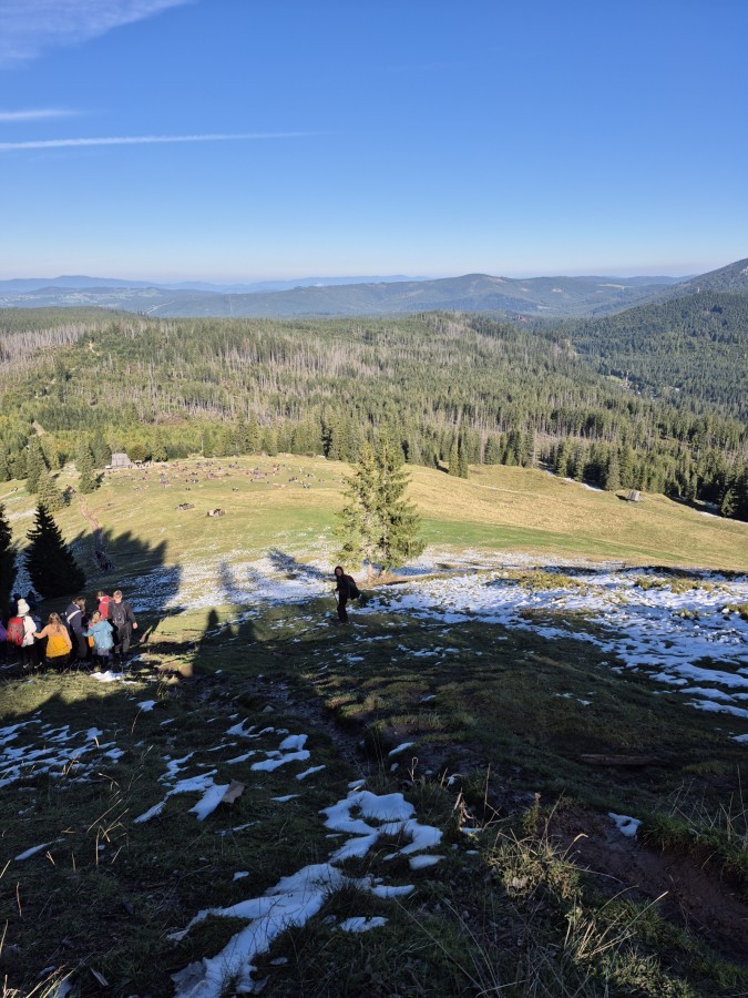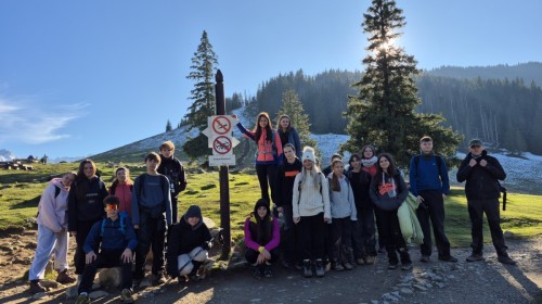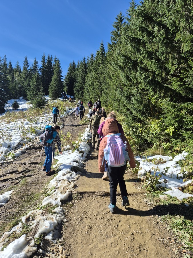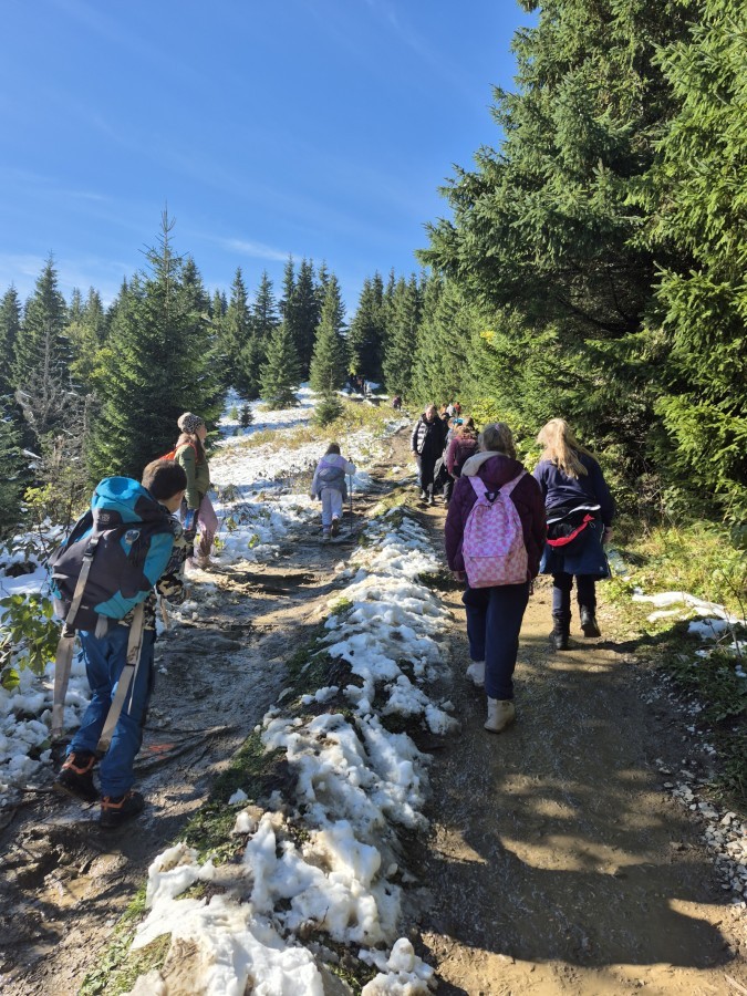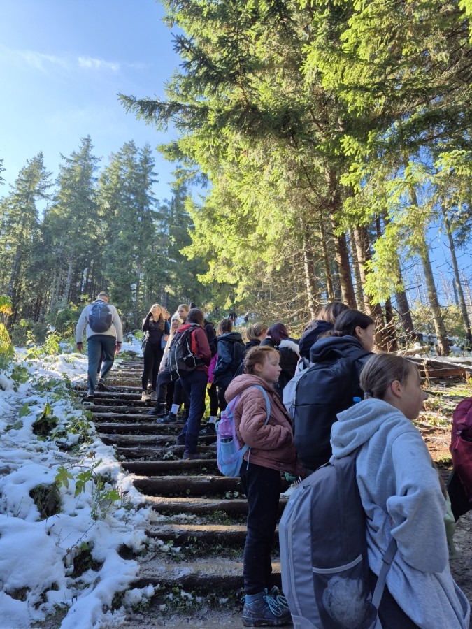 4 października 2025 roku członkowie Szkolnego Koła Polskiego Towarzystwa Tatrzańskiego wyruszyli na swoją pierwszą wspólną wędrówkę po tatrzańskich szlakach. Piękna, słoneczna pogoda towarzyszyła nam przez cały dzień, co tylko spotęgowało radość z obcowania z górską przyrodą. Podczas postoju na Rusinowej Polanie mieliśmy okazję wysłuchać ciekawej opowieści naszej przewodniczki, pani Ani, na temat kulturowego wypasu owiec – tradycji głęboko zakorzenionej w historii Podhala. Kolejnym ważnym punktem wyprawy była Gęsia Szyja, z której roztacza się imponująca panorama Tatr Wysokich. To właśnie tam, na tle majestatycznych szczytów, pani Ania wręczyła uczestnikom legitymacje członkowskie Polskiego Towarzystwa Tatrzańskiego – symboliczne potwierdzenie przynależności do górskiej społeczności. Wyprawa była nie tylko doskonałą okazją do poznania tatrzańskiej przyrody, ale także inspirującym początkiem naszej wspólnej przygody z górami.
