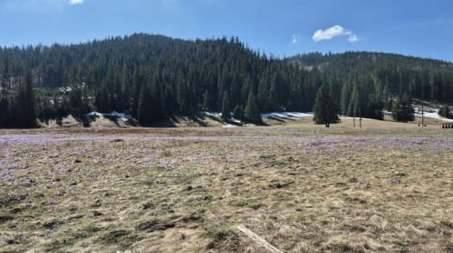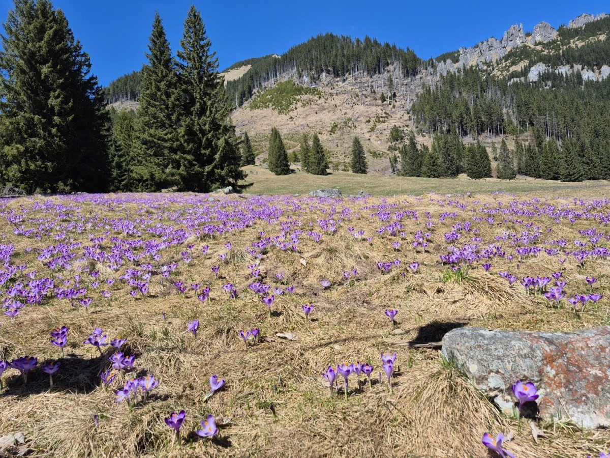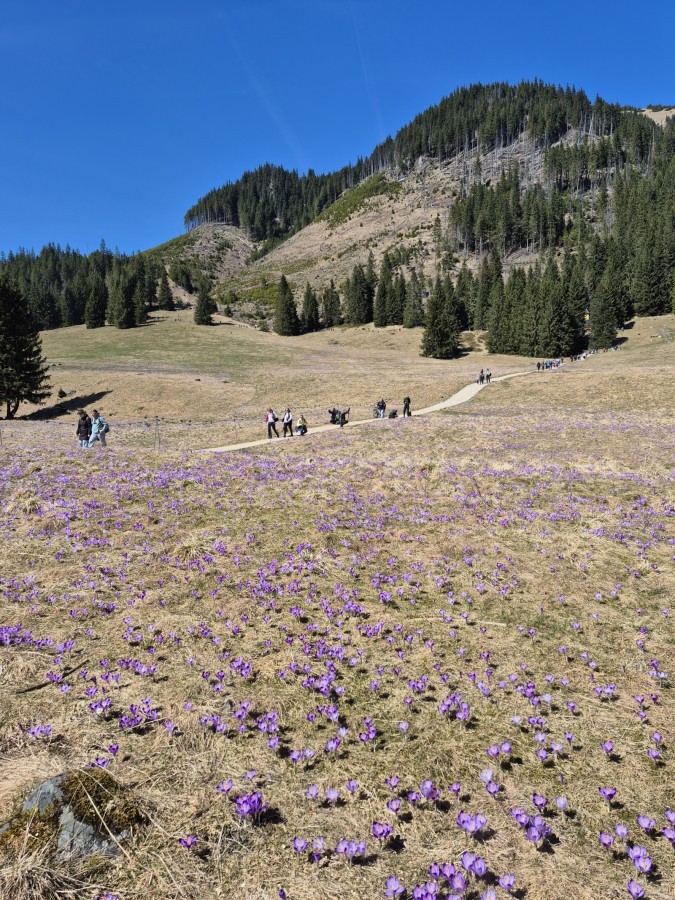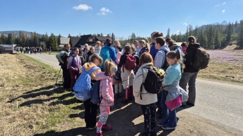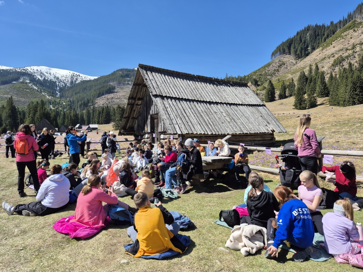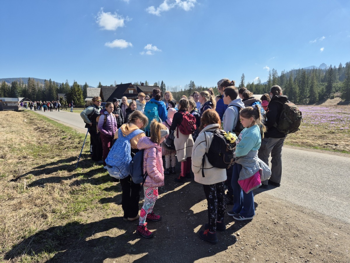 W dniu 18 kwietnia 2026 roku członkowie SK PTT „Podniebni” i SP36 wraz z opiekunkami udali się na długo wyczekiwaną wyprawę do Doliny Chochołowskiej w poszukiwaniu wiosennych krokusów. I odnieśli sukces — nawet wątpiący (a było ich kilku) musieli przyznać, że widok fioletowych, kwietnych dywanów był wart bardzo wczesnej sobotniej pobudki, a następnie długiego marszu w towarzystwie setek innych wędrowców spragnionych niezapomnianych widoków. Podczas wyjazdu uczestnicy włączyli się również w piętnastą edycję corocznej akcji „Sprzątamy Beskidy z PTT”, organizowanej przez Polskie Towarzystwo Tatrzańskie – Oddział w Bielsku-Białej, łącząc podziwianie przyrody z troską o jej ochronę.