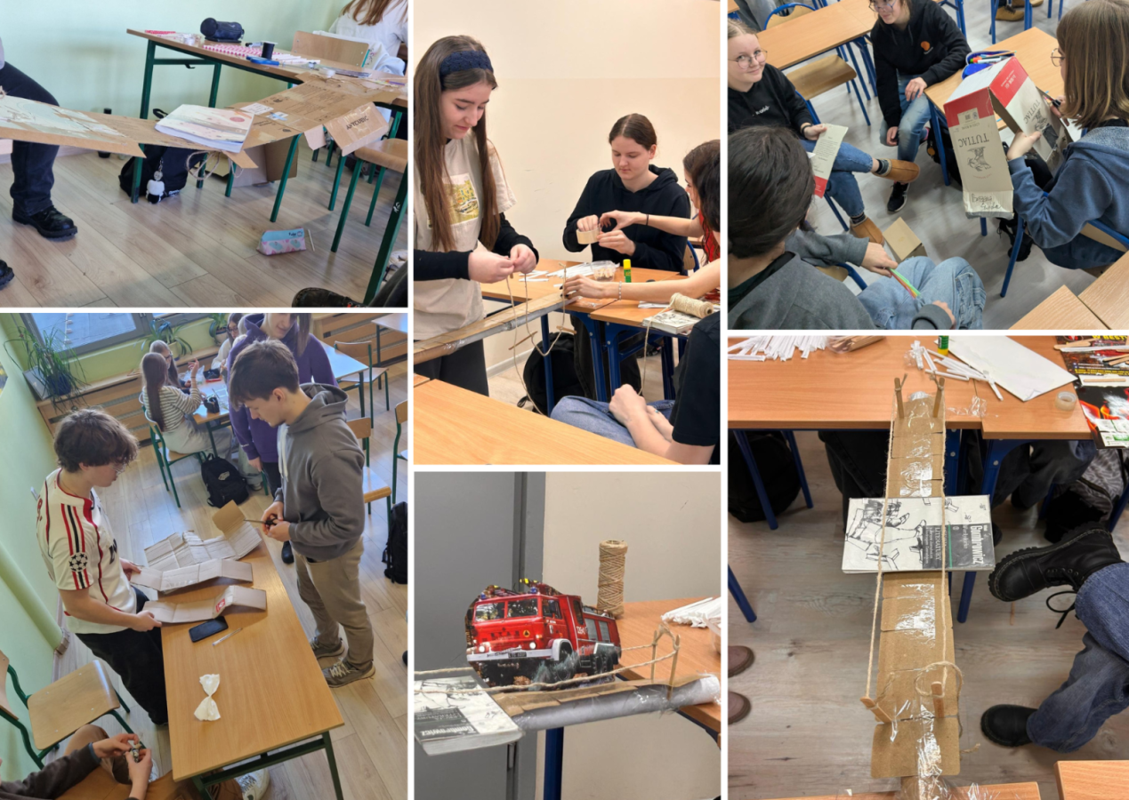Po udziale w kursie 4K (kreatywność, krytyczne myślenie, komunikacja, kooperacja) w Portugalii w ramach mobilności programu Erasmus+, jedna z uczestniczek przygotowała autorski scenariusz lekcji wychowawczej pt. „Most przez przepaść – uczymy się współpracować, komunikować i myśleć twórczo”. Zajęcia zostały opracowane z myślą o uczniach liceum ogólnokształcącego i stanowią praktyczne wykorzystanie wiedzy oraz inspiracji zdobytych podczas szkolenia. Scenariusz koncentruje się na rozwijaniu kompetencji kluczowych XXI wieku. Uczniowie, pracując zespołowo nad budową mostu, ćwiczą skuteczną komunikację, uczą się współdziałania w grupie, podejmowania decyzji oraz twórczego rozwiązywania problemów. Zadanie wymaga zaangażowania, podziału ról i odpowiedzialności za wspólny efekt, a jednocześnie sprzyja integracji zespołu klasowego. Każdy z wychowawców klas I–III LO został poproszony o przeprowadzenie zajęć według przygotowanego scenariusza. Dzięki temu inicjatywa objęła wszystkich uczniów szkoły, stając się wspólnym doświadczeniem edukacyjnym oraz okazją do wymiany refleksji między nauczycielami. Realizacja lekcji była nie tylko praktycznym wdrożeniem założeń kursu 4K, ale także świetną okazją do budowania relacji i wzmacniania współpracy w zespołach klasowych.