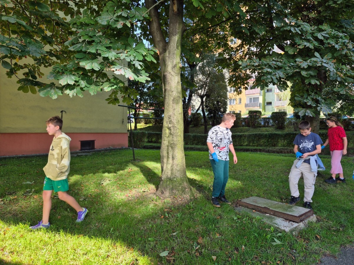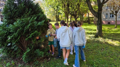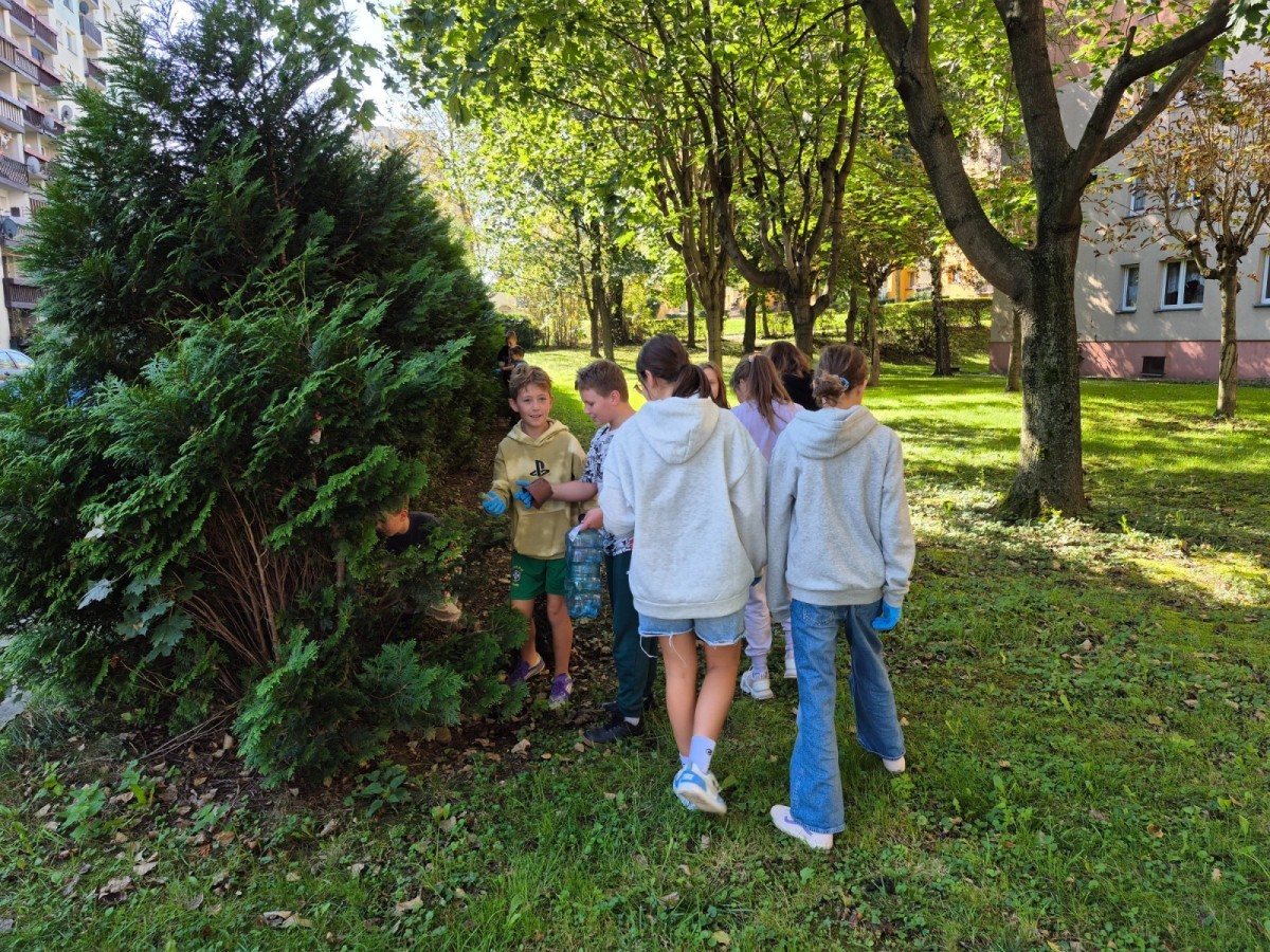 Wspólnymi siłami uczniowie porządkowali tereny zielone w najbliższym otoczeniu szkoły, promując postawy proekologiczne i uświadamiając, jak ważna jest troska o środowisko – zarówno lokalnie, jak i globalnie.
