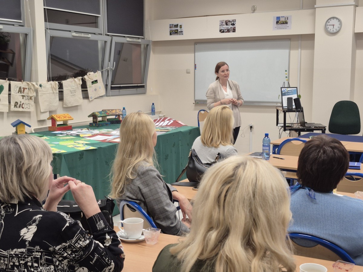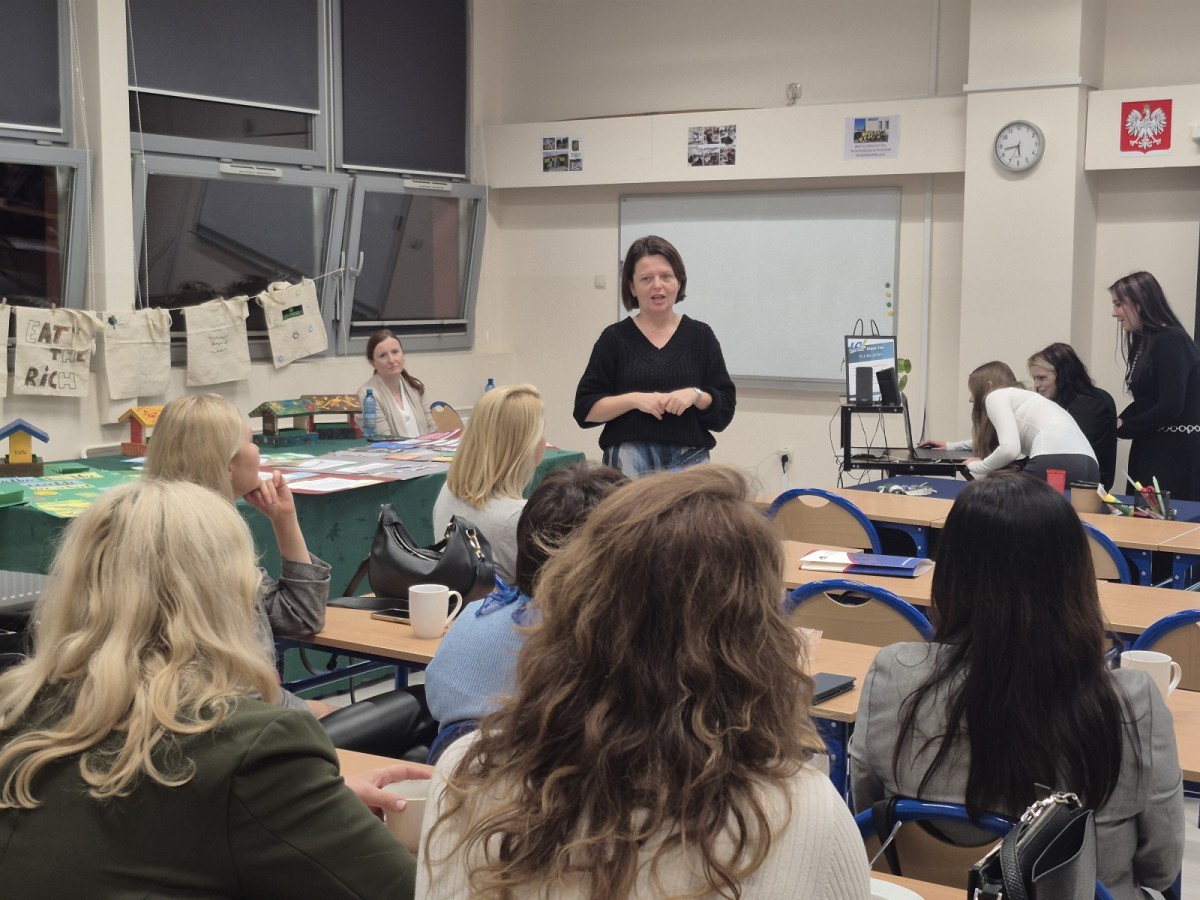 W czwartek, 20 listopada 2025 roku, odbyły się warsztaty skierowane do nauczycieli szkół podstawowych i ponadpodstawowych zainteresowanych rozwijaniem edukacji ekologicznej oraz wykorzystaniem rezultatów projektów Erasmus+ w codziennej praktyce szkolnej. Spotkanie zgromadziło pedagogów poszukujących inspiracji, nowych narzędzi dydaktycznych oraz sprawdzonych metod pracy z zakresu edukacji klimatycznej i międzynarodowej współpracy.