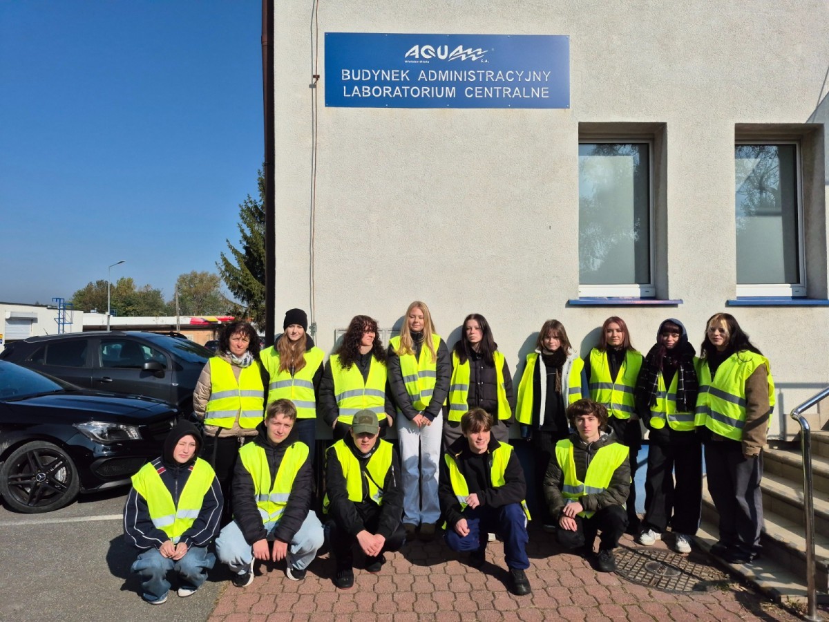 3 października 2025 roku uczniowie naszej szkoły, przygotowujący się do realizacji projektu ekologicznego w ramach programu Erasmus+, uczestniczyli w wycieczce dydaktycznej do oczyszczalni ścieków w Komorowicach, prowadzonej przez firmę AQUA S.A. Celem wizyty było pogłębienie wiedzy na temat nowoczesnych rozwiązań w zakresie ochrony środowiska, stosowanych przez jednego z liderów branży wodno-kanalizacyjnej w regionie. Firma AQUA S.A. od lat realizuje działania w ramach strategii środowiskowej, która jest integralną częścią jej strategii biznesowej. Podczas spotkania uczniowie mieli okazję zapoznać się z zaawansowanymi technologiami oczyszczania ścieków oraz systemami poprawy jakości ujmowanej wody. Przedstawiciele firmy podkreślili, jak ważne jest stosowanie urządzeń o wysokiej efektywności i niskiej energochłonności oraz poszukiwanie alternatywnych źródeł energii. AQUA S.A. aktywnie przeciwdziała negatywnym zmianom środowiska, czego potwierdzeniem jest wdrożenie certyfikowanego systemu zarządzania środowiskowego zgodnego z normą ISO 14001:2015. W ramach przyjętego Programu środowiskowego firma określiła konkretne cele i kierunki działań na rzecz ochrony środowiska naturalnego.